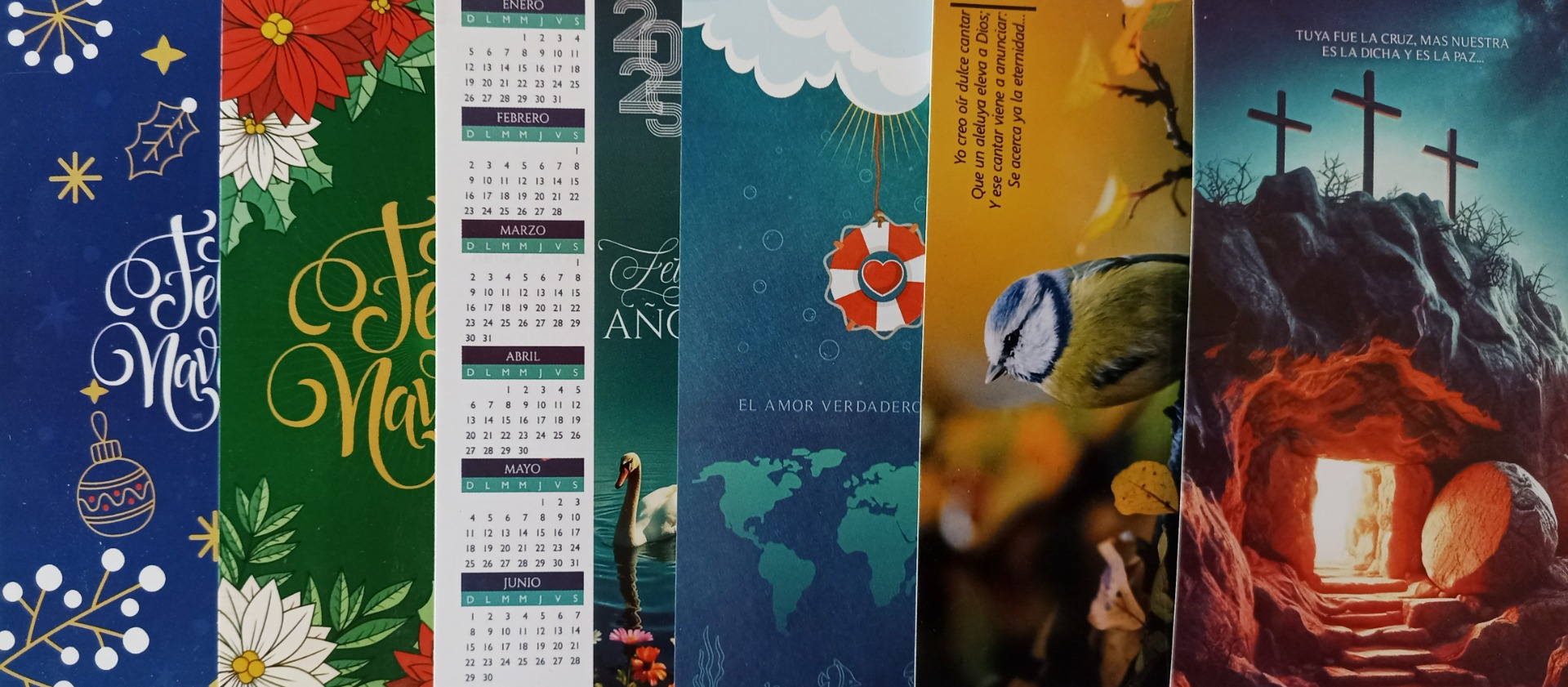Los modelos aquí presentados son los modelos existentes hasta el momento; cada cierto tiempo se actualiza el catálogo con nuevos modelos, algunos de ellos temáticos a la época del año. La postales "calendario" cambian de diseño cada fin de año. Haz zoom para leer los textos de las postales. En cada imagen se muestra el precio por ciento y por millar. Los gastos de envío corren a cuenta del cliente.